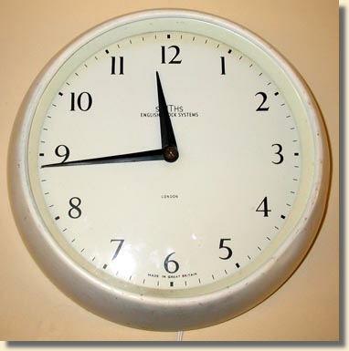 The movements for ECS slave dials were made by Smiths English Clocks Ltd and were generally marked with the initials 'ECS' and the type number written on the bridge plate of the movement. Very early slave dial movements, such as the one illustrated on the left, were marked with the initials SEC (for Smiths English Clocks) and were designed with a paxolin index wheel. The later movements were made with a brass index wheel as shown in the right-hand example. For more details of the standard slave movements, see Design Progression further down this page. Many styles of case and dial were produced over the years, and examples are to be found illustrated on the 'Catalogues' page. Most dials for interior use are around 9 or 10 inches in diameter and use the light duty movement, type 205/12 or type 205/19. These light duty movements have an index wheel 47mm in diameter.