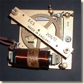 Only one example has been found of the movement Type 205/28 quoted in the ECS specifications below, (specified as suitable for mid-sized dials) and this was in the smaller programmer described in the Ancillaries section. Although in this case it was not driving a medium sized dial, the various contact sets presented a considerable load to the slave action. The index wheel diameter is 47mm, the same as the light duty movements.